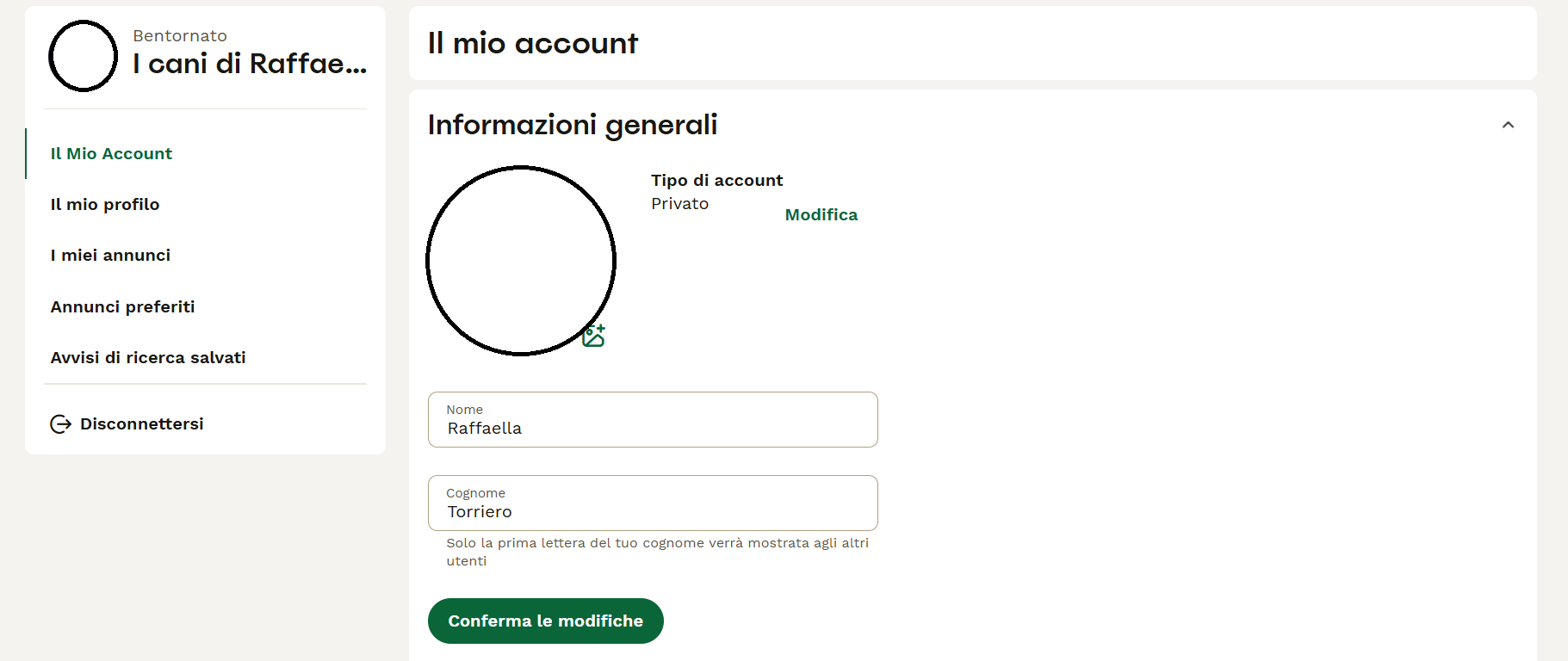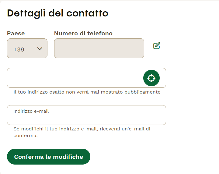 ATTENZIONE: I nuovi annunci utilizzeranno automaticamente i dettagli salvati nel tuo profilo. Tuttavia, gli annunci già online non verranno aggiornati automaticamente. Se modifichi i tuoi dati, ricordati di aggiornare manualmente ogni annuncio esistente per assicurarti che le informazioni di contatto siano sempre corrette.