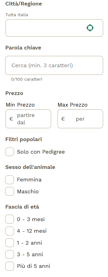 Se effettui frequentemente una ricerca particolare, puoi salvare la ricerca e ricevere avvisi quando su AnnunciAnimali compaiono nuovi annunci che corrispondono ai tuoi criteri di ricerca.